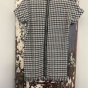 Zara women’s Houndstooth Tweed Fringe w rolled sleeves and zip back Size XS.