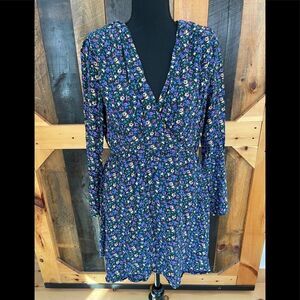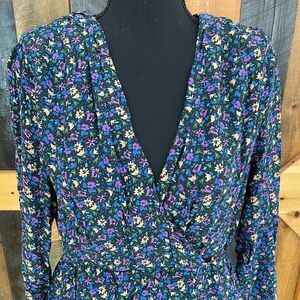 Zara wrap front style floral dress with shoulder pads, size L, 100% polyester.