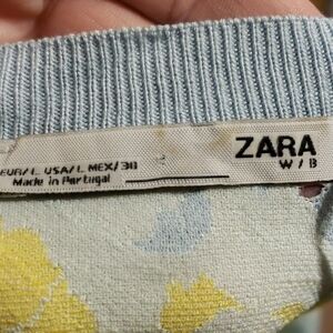 Zara yellow blue lace top scalloped half sleeves