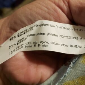 Beautiful lace top in pale yellow and blue shorter length wide sleeves with scalloped edge size large by zara