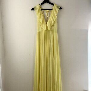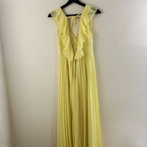 Zara yellow pleated ruffle plunge V-neck maxi dress