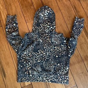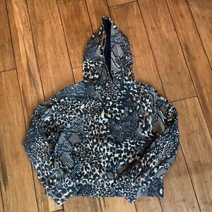 Lightweight material, slightly cropped hoodie. Animal print. 100% cotton. Size small.