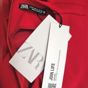 Zara Asymmetric Midi Dress Dark Red Womens Size M NWT