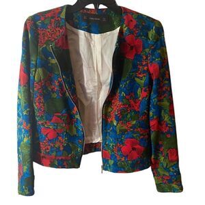 Zara Basic Floral Zip-Up Jacket With Zippers On Sleeve Size Small S
