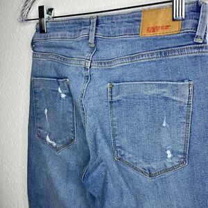Zara Basic Denim Skinny Frayed Jeans W White & Red Stripe down Sides 2