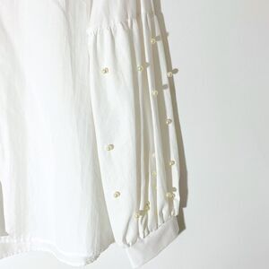 Zara Basic Editions Pearl Balloon Sleeve White Button Down Top Size XS