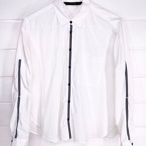 Zara Basic Editions White With Navy Contrast Piping Relaxed Button Down Shirt XS
