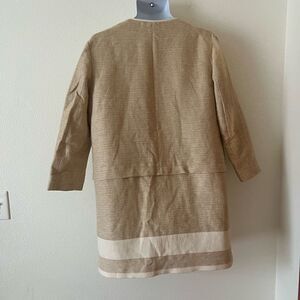 Zara Basic Open Front Long Sleeve Textured Mid Length Jacket Large Beige Tan L