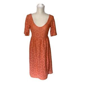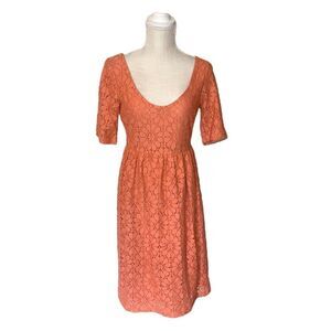 Zara Basic Strawberry Floral Lace Dress. Beautiful, feminine, romantic dress. Fit & Flare skater style dress. Hugs your curves in all the right places. Zippered back. Fully lined. Official color is called strawberry but is more like a peach or color. Stunning color perfect to transition into spring or into fall! 57% Cotton, 23% nylon, 20% viscose. Lining 100% polyester. Measurements in pictures. Feel free to ask questions.