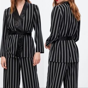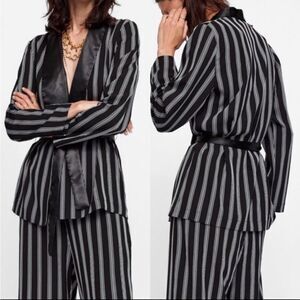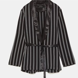 Zara Basic Black & White Striped Kimono Jacket (XS)