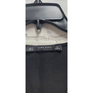Zara Basic Collection Pullover Blouse Black White Womens Flowy Shirttail S