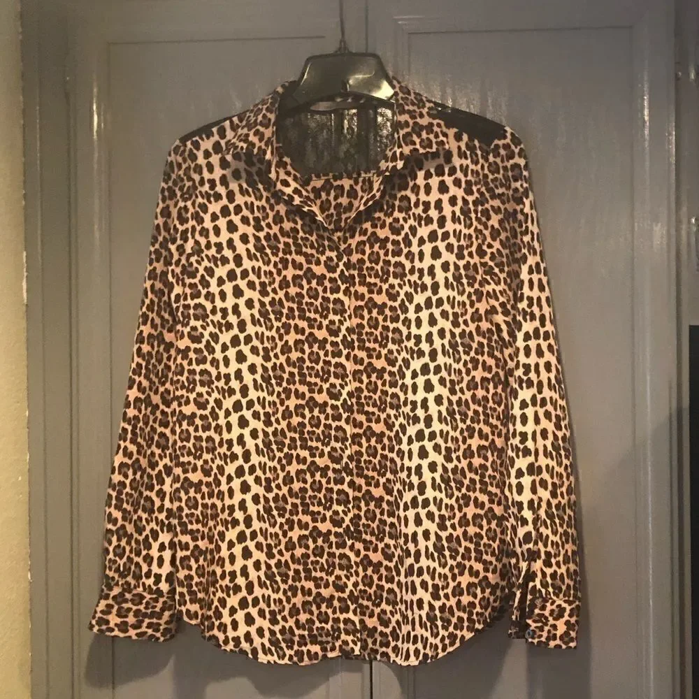 Leopard print, buttons down. Buttons on the sleeves too. Black lace in the back top. Great condition ! Size XS. Make me an offer!