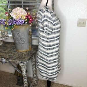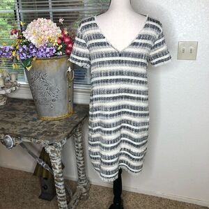 Zara Basic Cream and Black Tweed Fringed Shift Dress