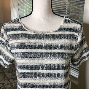 Cream and black tweed horizontal stripes with fringe