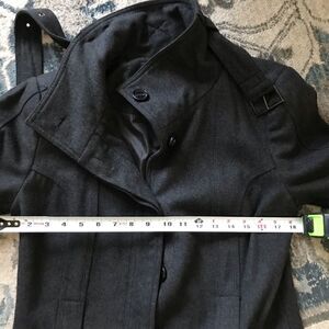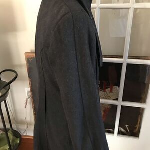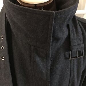 Nice wool coat with pockets no major issues. . Is missing one button and belt.