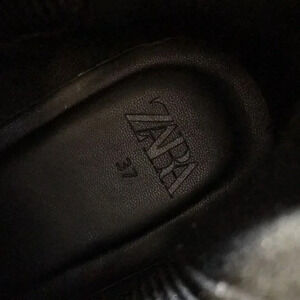 Zara Black Chelsea Boots Womens 37 Slip On Ankle Booties. 1.75 inch flat heel. Easy slip on. With elastic gores in the sides and loops at the top. Patterned soles.