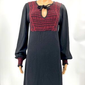 Zara Black Knit Fuchsia Embroidery Dress Size L Made in Morocco RN USA#77302