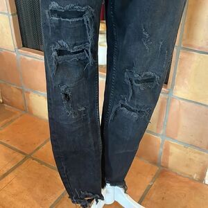 Zara Black Distressed Button-Fly Skinny Jeans, 30!