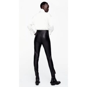 High waisted leggings. Faux front pockets. Hidden in seam side zipper.