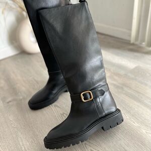 Zara Black Leather Riding Boots New US 8 / euro 30