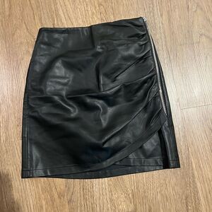 Zara Black leather skirt with ruched zipper on the side Size:XS