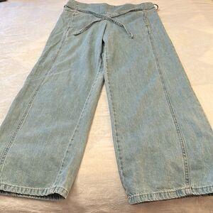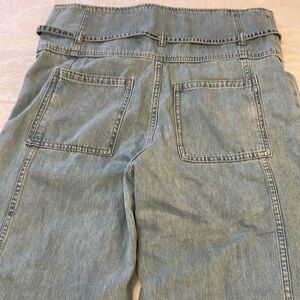 Zara Blue Denim Jean with Paper Bag Waist Wide Legs Size 2 Denim Belt