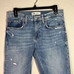 Zara Blue Distressed Midi Ankle Skinny Jeans Women's Size 4