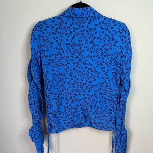 Zara Blue Floral Cinched Sleeved Blouse with Ties