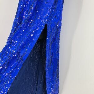 Zara Blue Sequined Sleeveless Halter Keyhole Side Slit Bodycon Party Midi Dress Medium