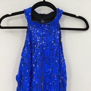 Zara Blue Sequin Sleeveless Halter Keyhole Slit Bodycon Party Midi Dress Medium