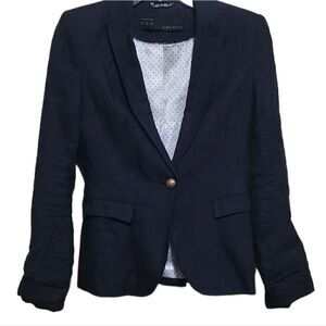 Preowned ZARA Blue LinenBlend LongSleeve One Button Blazer in good condition.