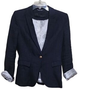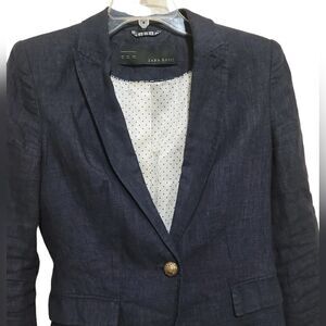 Zara Blue LinenBlend LongSleeve Blazer Sz Xsmall