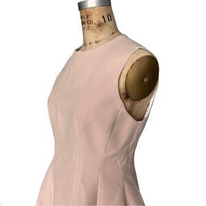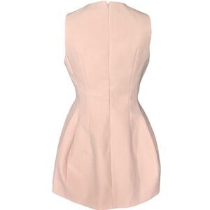 This sleeveless dress by Zara features a tailored fit with a flared skirt in a soft blush pink hue. Crafted with a smooth fabric blend, it offers a polished silhouette suitable for various occasions, combining simplicity with understated elegance.