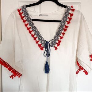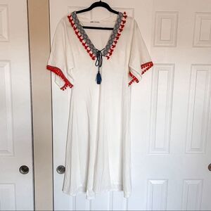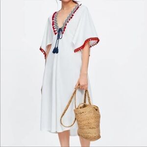 Zara Boho Pom Pom Tassel Midi Dress White S