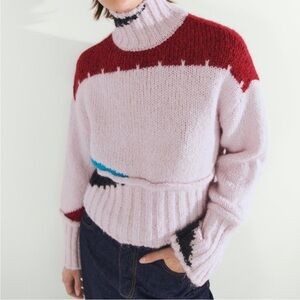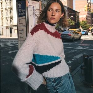 Zara Boxy Cropped Colorblock Chunky Knit Wool Blend Sweater Size Medium western