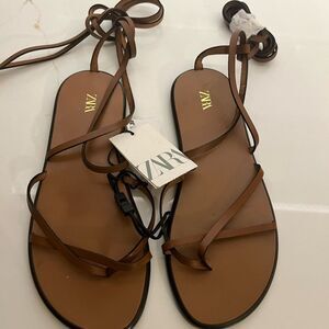 This Zara bag features a sleek and structured design in a warm caramel brown hue, embodying a minimalist aesthetic. Crafted with attention to detail, it showcases the brand's signature style, making it a versatile accessory for any occasion.