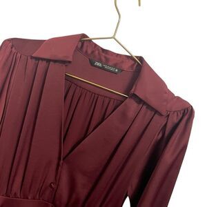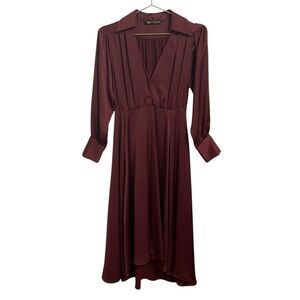 Zara Burgundy Crepe Satin Effect Midi Dress Size XS