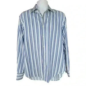 Zara Button Down Mens Size 16 Blue Striped Tailored Fit Shirt Long Sleeve Collar