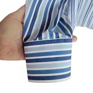 Elevate your wardrobe with this sophisticated Zara blue striped shirt. Designed for the modern man, this tailored fit shirt features a classic collared neckline and long sleeves with button cuffs. The shirt is made of high-quality cotton material, making it lightweight and breathable, perfect for any season.
