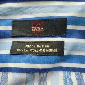 With its button-up closure and easy-care features, this shirt is ideal for formal or workwear occasions. The shirt's accents include buttons and a point collar style, adding a touch of elegance to your outfit. Available in size 16, this Zara shirt is a must-have for any man's wardrobe.