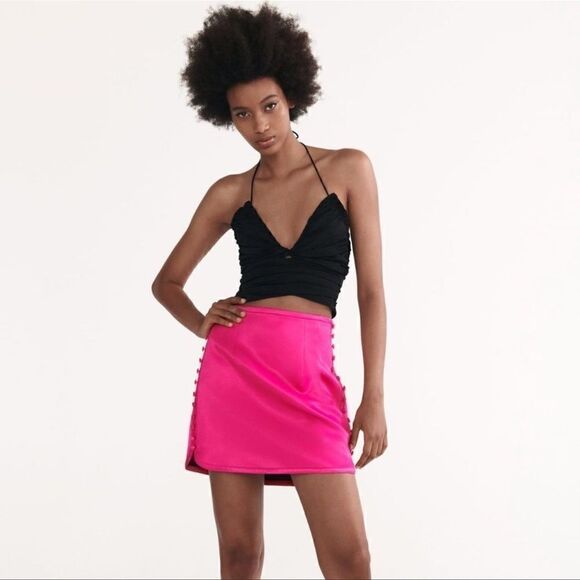 Zara Buttoned Satin Effect Mini Skirt Fuchsia S