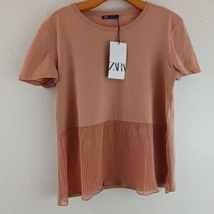 Zara Combined plieded short sleeve t-shirt size S. New with tags. it has a small stain see pictures for details