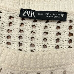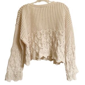 Zara Cream Open Knit Cropped Boxy Bell Sleeve Sweater Size Large
