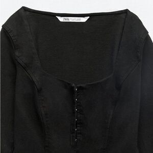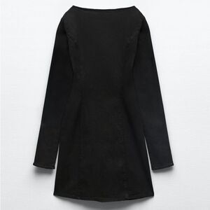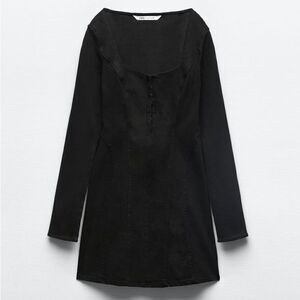 Dress with sweetheart neckline and long sleeves. Front metal hook and side zipper closures.