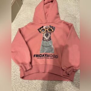 Zara Dog Graphic Friday Mood Pink Hoodie Sz 8