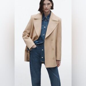 Zara Double Breasted Short Coat Taupe Brown New Small