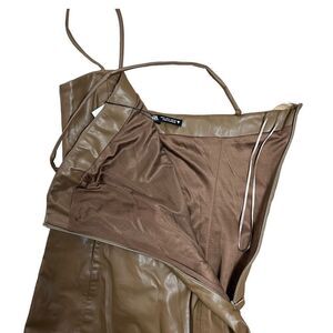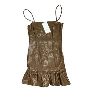 Zara Dress WMNS S Brown Faux Leather Bodycon Mini Ruffle Party Liquid Sexy Club