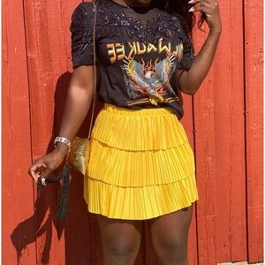 Zara EUC Pleated Mustard Yellow Mini Skirt Size S Tiered