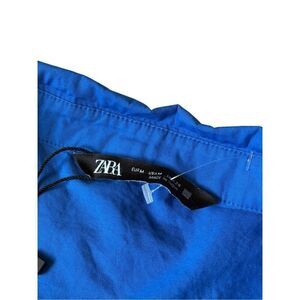 Zara Embroidered Top Blouse Button Front size M Boho Blue Collared