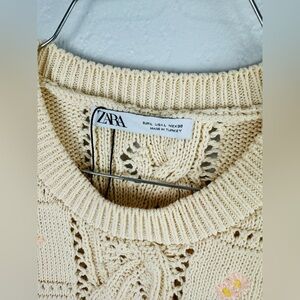 Zara Embroidered Cream Floral Print Pointelle Knit Sweater Vest Size Large